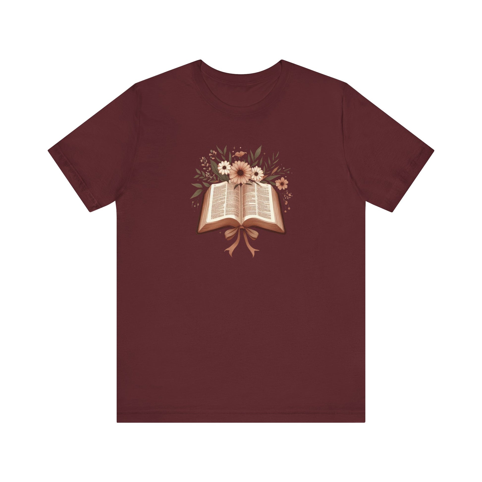 Introducing our stylish Unisex Jersey Short Sleeve Tee, perfect for book lovers and floral enthusiasts alike. This tee features a beautifully designed open book surrounded by elegant blooms that brings a touch of whimsy and serenity. Wear it casually at home, during a picnic, or while meeting friends for coffee. Made with lightweight, breathable fabric, it is ideal for layering. The classic crew neckline ensures you look effortlessly chic while staying comfortable. Perfect for gifting on occasions like birthdays, holidays, or special events with a literary theme, this tee resonates with avid readers, educators, and anyone who finds joy in the pages of a good book.