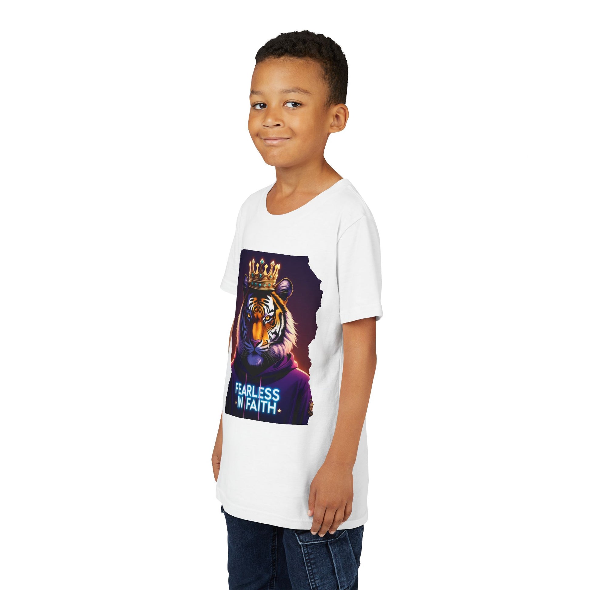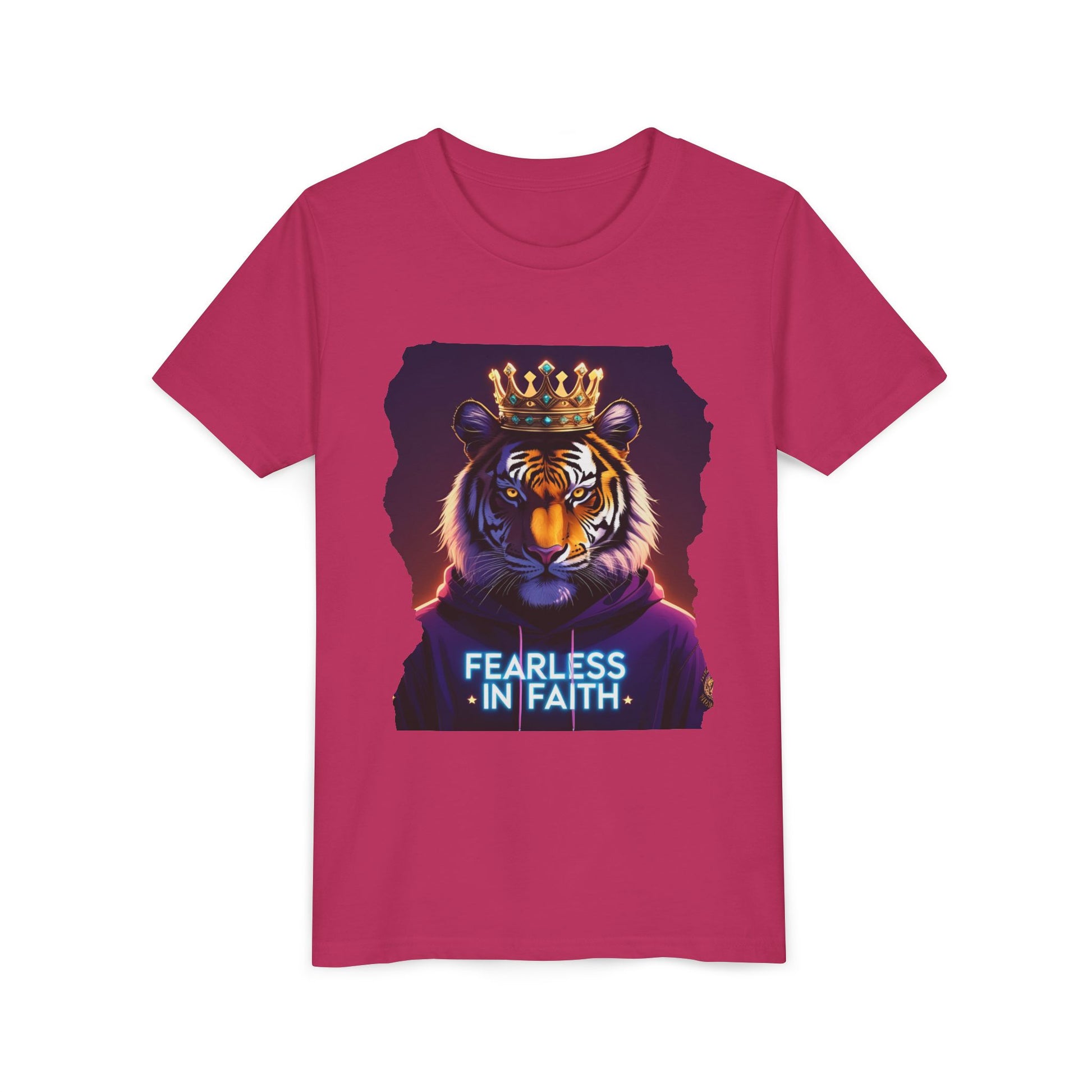 Fearless in Faith Tiger Tee, Youth Graphic Shirt, Motivational Kids Tee, Animal Lover Gift, Inspirational Apparel