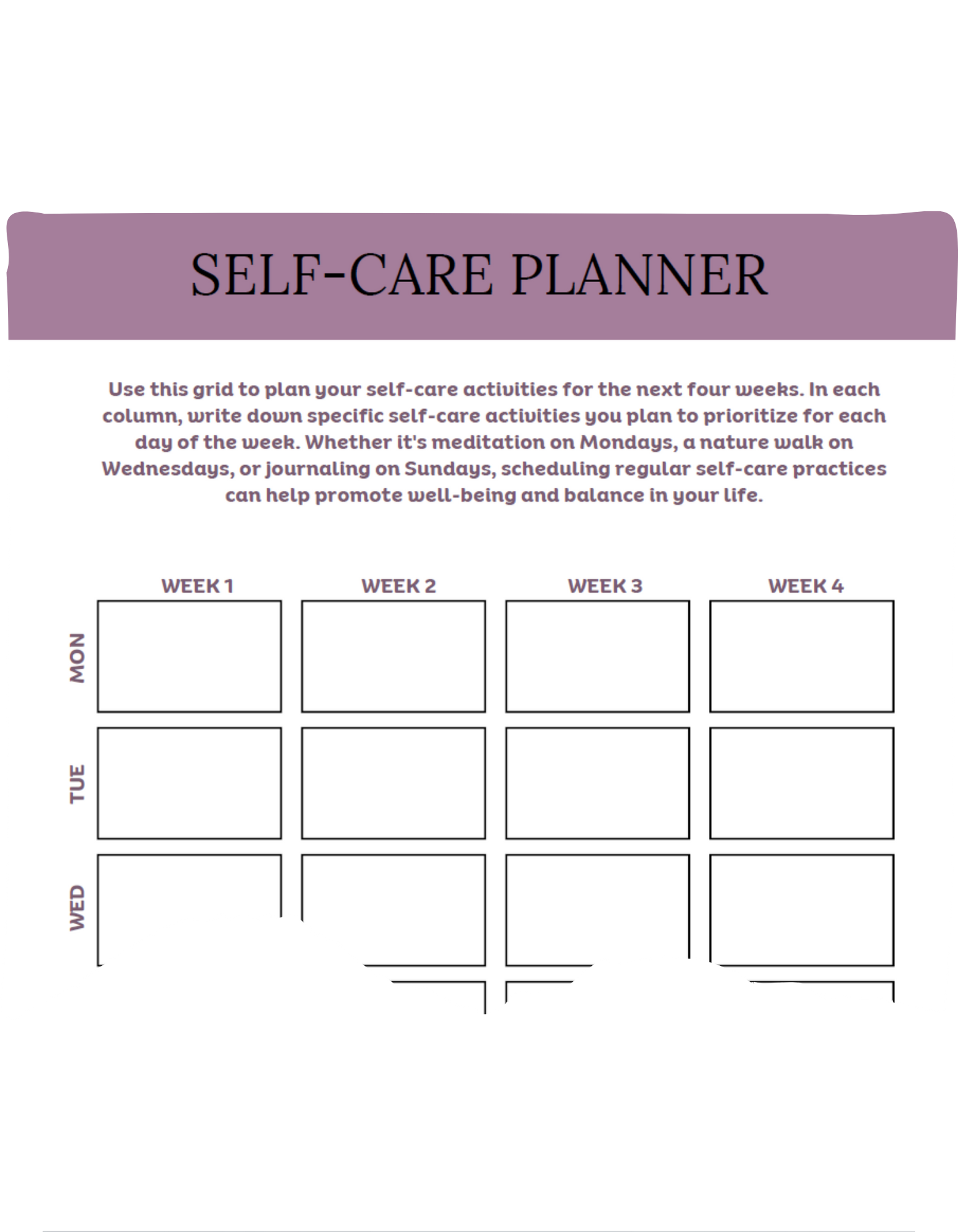 - Self Care Planner: Plan and prioritize your self-care activities.
